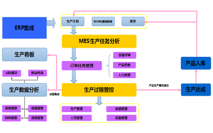 建立集成的生產(chǎn)制造執(zhí)行系統(tǒng)(MES),覆蓋對(duì)人、機(jī)、料、法、環(huán)、地理、產(chǎn)品等生產(chǎn)要素的管理,數(shù)據(jù)采集方面帶來質(zhì)的飛躍。