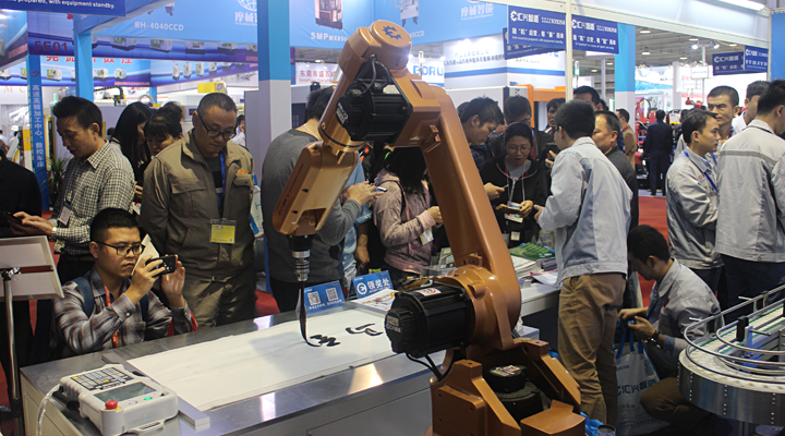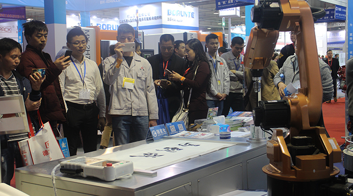 匯興智造推崇中國(guó)傳統(tǒng)文化,一直以傳承弘揚(yáng)中國(guó)文化為己任,把中國(guó)傳統(tǒng)文化揉入工廠運(yùn)營(yíng)、產(chǎn)品設(shè)備已是一派自然而然。由匯興智造自主研發(fā)的書(shū)法機(jī)器人在本次博覽會(huì)上大展拳腳,深情演繹中國(guó)書(shū)法。
