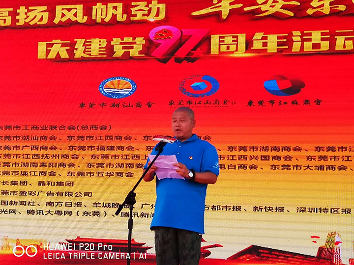 2018年6月30日上午,以“黨旗高揚(yáng)風(fēng)帆勁 平安東莞譜華章”為主題的慶祝建黨97周年活動在黃旗公園舉行,本次活動由市工商聯(lián)(總商會)指導(dǎo),東莞市潮汕商會、東莞市江西商會、東莞市江蘇商會發(fā)起聯(lián)合在莞25家商協(xié)會共同主辦。東莞市工商聯(lián)(總商會)副主席張軍民、副調(diào)研員宋志鋒等領(lǐng)導(dǎo)及近1000名商協(xié)會黨員出席活動。