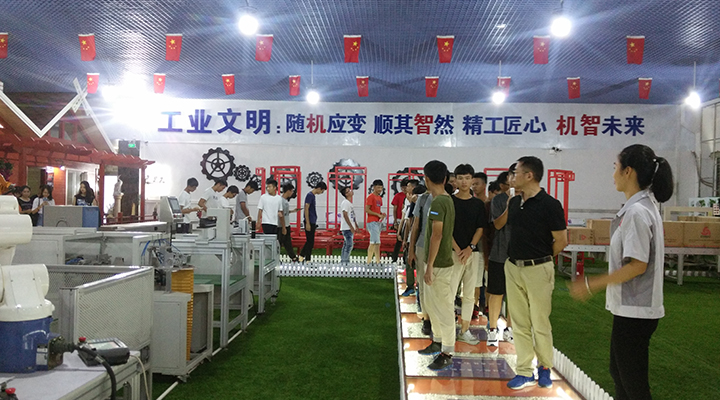 10月13日,來自東莞職業(yè)技術(shù)學院的80多位師生蒞臨匯興智造進行交流學習,匯興智造蔣經(jīng)理代表全體員工表示對貴師生的到來表示熱烈的歡迎。并讓我們的文化大使盧錦靚帶領全體師生實地參觀我們的智能裝備工業(yè)4.0體驗館。