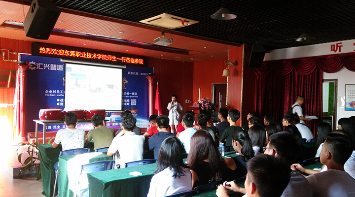 在參觀完體驗館后為了可以進一步的讓師生了解匯興智造,蔣經(jīng)理還特意為師生們介紹了匯興發(fā)展歷程、核心優(yōu)勢、戰(zhàn)略規(guī)劃以及商業(yè)模式。東莞職業(yè)技術(shù)學院師生們對這次與匯興智造的學習交流活動十分歡喜,都表示學到了很多書上沒有的東西,期待今后還有交再次交流的機會。