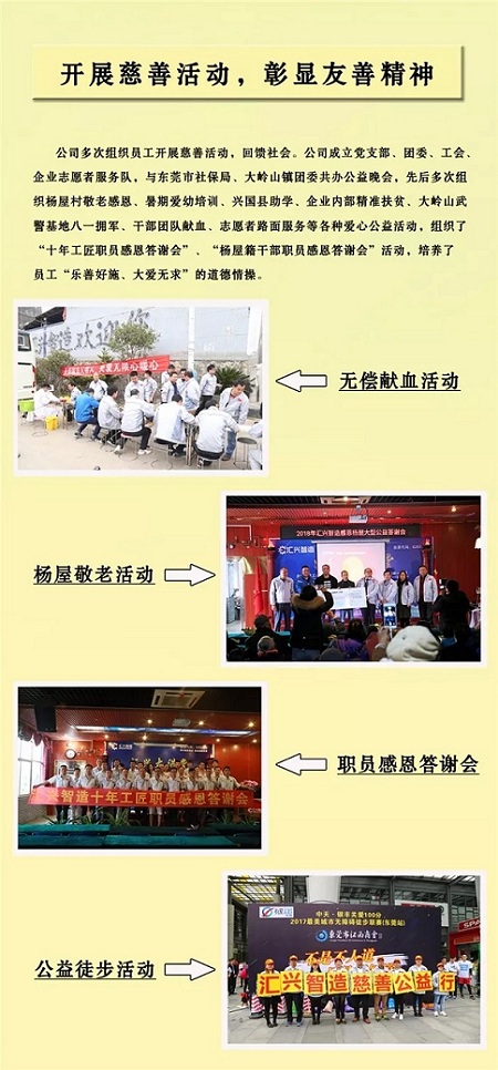 如果信念有顏色,那一定是中國紅!無償獻(xiàn)血是無私奉獻(xiàn)、救死扶傷的崇高行為,是我國血液事業(yè)發(fā)展的強(qiáng)大助力和保障。匯興智造作為東莞市首批10家“友善企業(yè)”之一,始終在堅(jiān)持以人為本,注重人文關(guān)懷的同時(shí),致力于將“友善”的價(jià)值觀、理念融入公司日?;顒?dòng)中,通過快樂工作,幸福生活的獨(dú)具特色的“友善文化”和“一個(gè)行業(yè) 一個(gè)家庭 一所學(xué)校 一支軍隊(duì)”的人文理念,把社會(huì)主義核心價(jià)值觀融入到員工思想教育工作之中;夯實(shí)“友善企業(yè)”基礎(chǔ)、打造“友善環(huán)境”陣地、構(gòu)建友善勞動(dòng)關(guān)系。在點(diǎn)點(diǎn)滴滴中融合、滲透,全方位落地生根,營造和諧友善氛圍和人文環(huán)境,積極提升員工的幸福感和自豪感,讓員工在公司平臺(tái)上充分展現(xiàn)自我,實(shí)現(xiàn)自身價(jià)值,創(chuàng)享更加美好的生活。