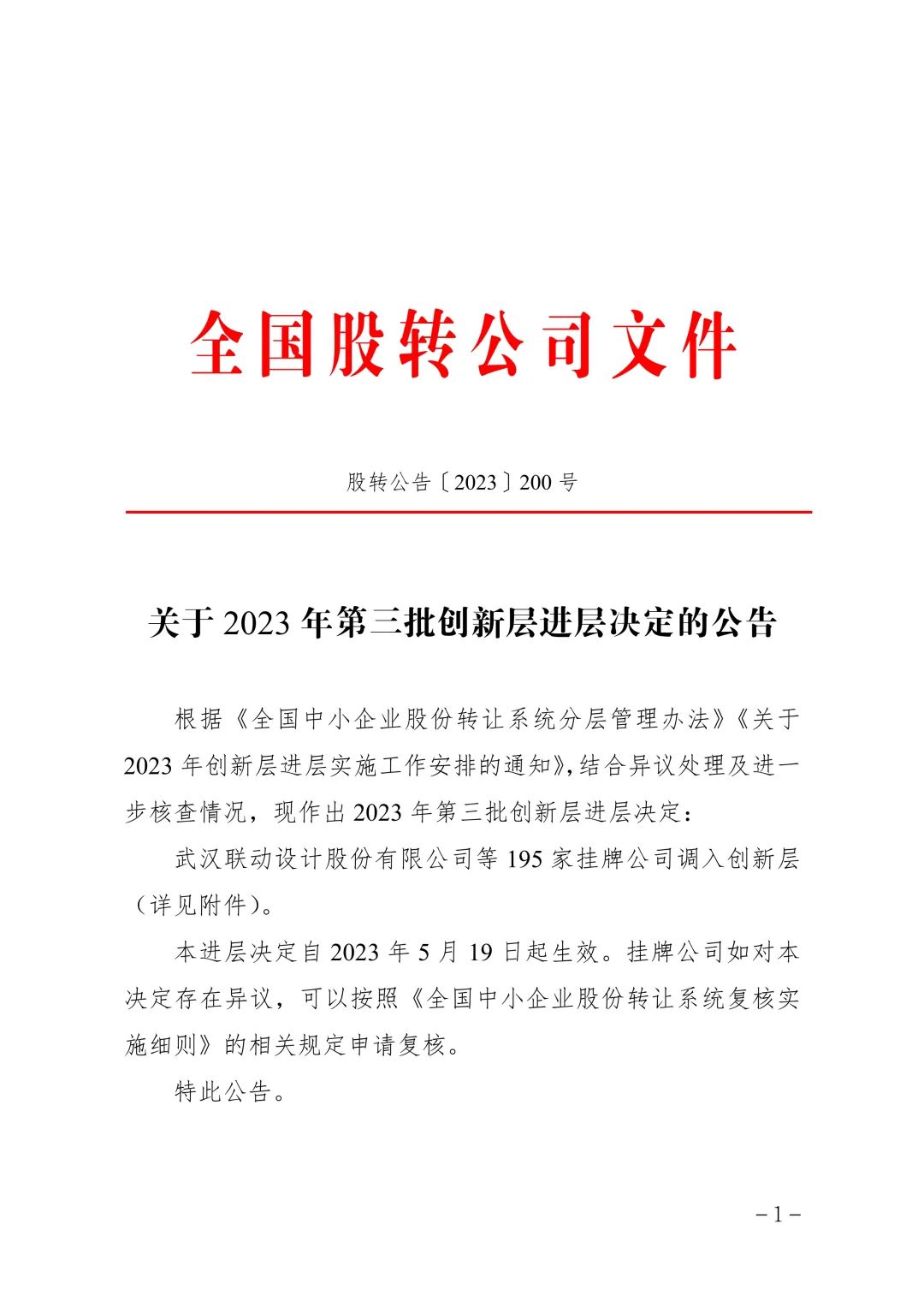 全國(guó)中小企業(yè)股份轉(zhuǎn)讓系統(tǒng)有限責(zé)任公司于2023年5月17日在其官網(wǎng)發(fā)布的《關(guān)于2023年第三批創(chuàng)新層進(jìn)層決定的公告》(股轉(zhuǎn)公告【2023】 200 號(hào)),廣東匯興精工智造股份有限公司(股票代碼:839258)憑借持續(xù)增長(zhǎng)的經(jīng)營(yíng)業(yè)績(jī)從眾多基礎(chǔ)層掛牌公司中脫穎而出,2023年5月19日正式進(jìn)入新三板創(chuàng)新層,邁向更高層次的資本舞臺(tái)。
