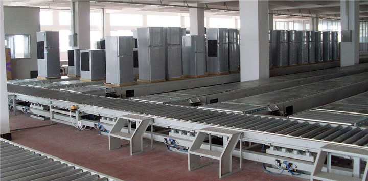 3、冰箱輸送自動(dòng)化生產(chǎn)線,具有承載能力大、可以多角度運(yùn)輸?shù)葍?yōu)勢(shì)。