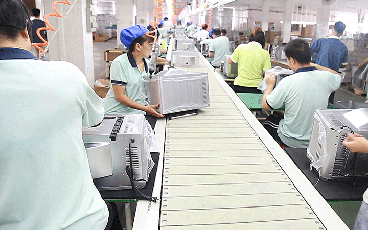 主要由鏈板輸送線組成,鏈板輸送機(jī)的輸送面平坦光滑,摩擦力小,可以游刃有余地輸送烤箱配件并進(jìn)行組裝。