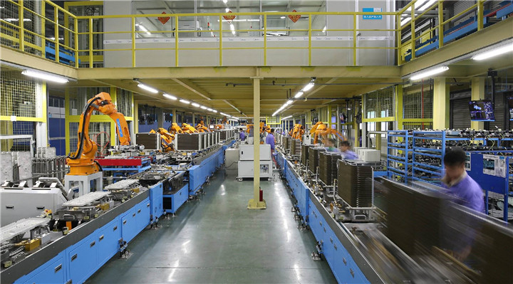 目前,匯興智造空調(diào)自動化生產(chǎn)線已深入零配件生產(chǎn)、內(nèi)外機(jī)組組裝、品質(zhì)檢測、成品入庫等多個生產(chǎn)環(huán)節(jié),自動化程度的提高,可令產(chǎn)品的生產(chǎn)效率、產(chǎn)品品質(zhì)實(shí)現(xiàn)整體提升,信息化建設(shè),完成從自動化生產(chǎn)到智能制造的轉(zhuǎn)變。
