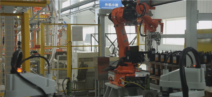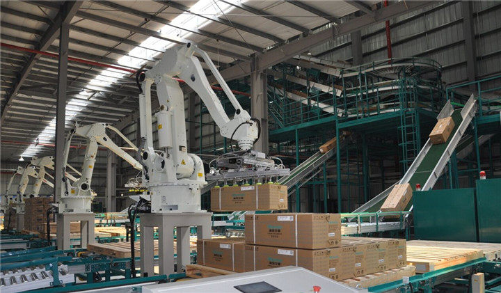 (四)自動化下線機(jī):通過機(jī)器人完成自動夾取產(chǎn)品、自動堆碼、自動取夾板等操作,全過程無人化操作,可滿足產(chǎn)品質(zhì)量在150KG內(nèi)的自動堆垛,安定效率高。