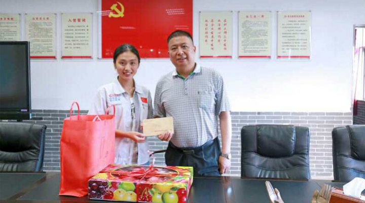 黨工委給困難黨員發(fā)放慰問金和水果