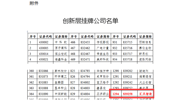 廣東匯興精工智造股份有限公司自2016年12月30日成功掛牌新三板后又傳來一大喜訊,5月30日,全國中小企業(yè)股份轉讓系統(tǒng)(以下簡稱“全國股轉系統(tǒng)”)公布了2017年創(chuàng)新層掛牌公司名單,廣東匯興精工智造股份有限公司(股票代碼:839258)成功從全國一萬余家新三板掛牌企業(yè)中脫穎而出,躋入新三板“優(yōu)等生”行列。