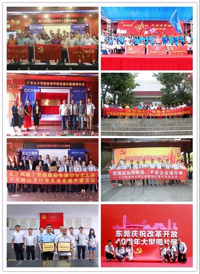 【附簡介】中國共產(chǎn)黨廣東匯興精工智造股份有限公司支部委員會(簡稱:匯興智造黨支部)成立于2017年5月匯興智造黨支部,現(xiàn)有正式黨員9人,入黨積極分子2人。教授級高工,匯興智造技術(shù)總工程師許光輝任黨支部書記,匯興智造黨支部圍繞“社會主義核心價值觀”為核心,高舉“黨旗映車間,助企創(chuàng)輝煌“ 旗幟,激勵全體黨員積極進取處處帶頭,增強黨員使命感和責任感,帶領(lǐng)全體員工,完成企業(yè)使命,承擔社會責任,回報社會、感恩社會,使企業(yè)具有強大的凝聚力和生命力,實現(xiàn)社會與企業(yè)的和諧發(fā)展。2018年,以黨建帶團建,匯興團支部榮獲“大嶺山五星團總支”,董事長鐘輝榮獲“南城街道 2018 年度‘兩新’黨組織優(yōu)秀共產(chǎn)黨員”,匯興智造獲評東莞首批十家友善企業(yè)。