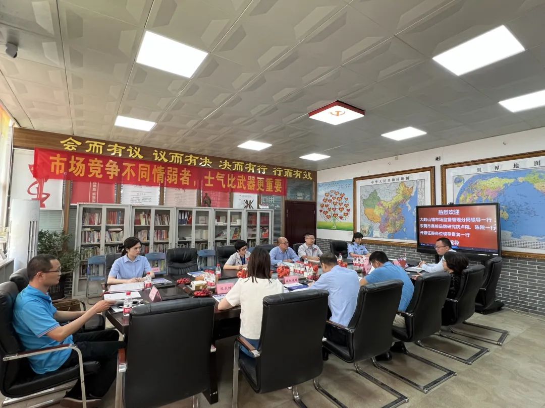 5月15日,大嶺山市場(chǎng)監(jiān)管局調(diào)研員高級(jí)主辦劉明周、監(jiān)管二股股長(zhǎng)歐陽(yáng)送明一行,東莞市商標(biāo)品牌研究院榮譽(yù)院長(zhǎng)盧靜娜、副院長(zhǎng)陳成蝶、智庫(kù)專家周沛