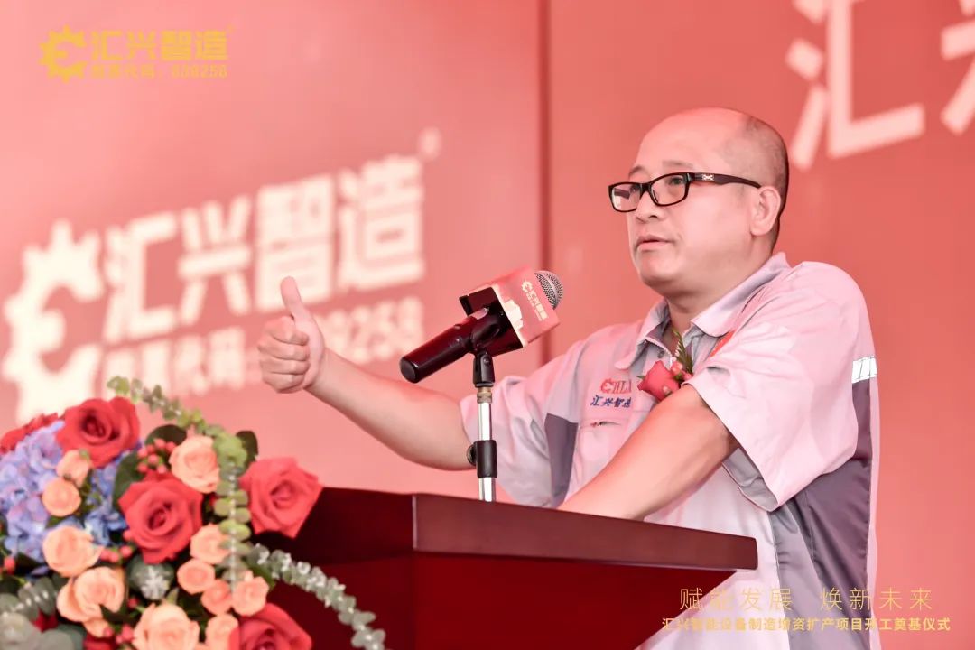 臨參加開工儀式現(xiàn)場的來賓朋友表達(dá)了由衷的感謝和崇高的敬意,其次對匯興智能設(shè)備制造增資擴(kuò)產(chǎn)項目進(jìn)行了相關(guān)介紹,項目總投資3億元,用地面